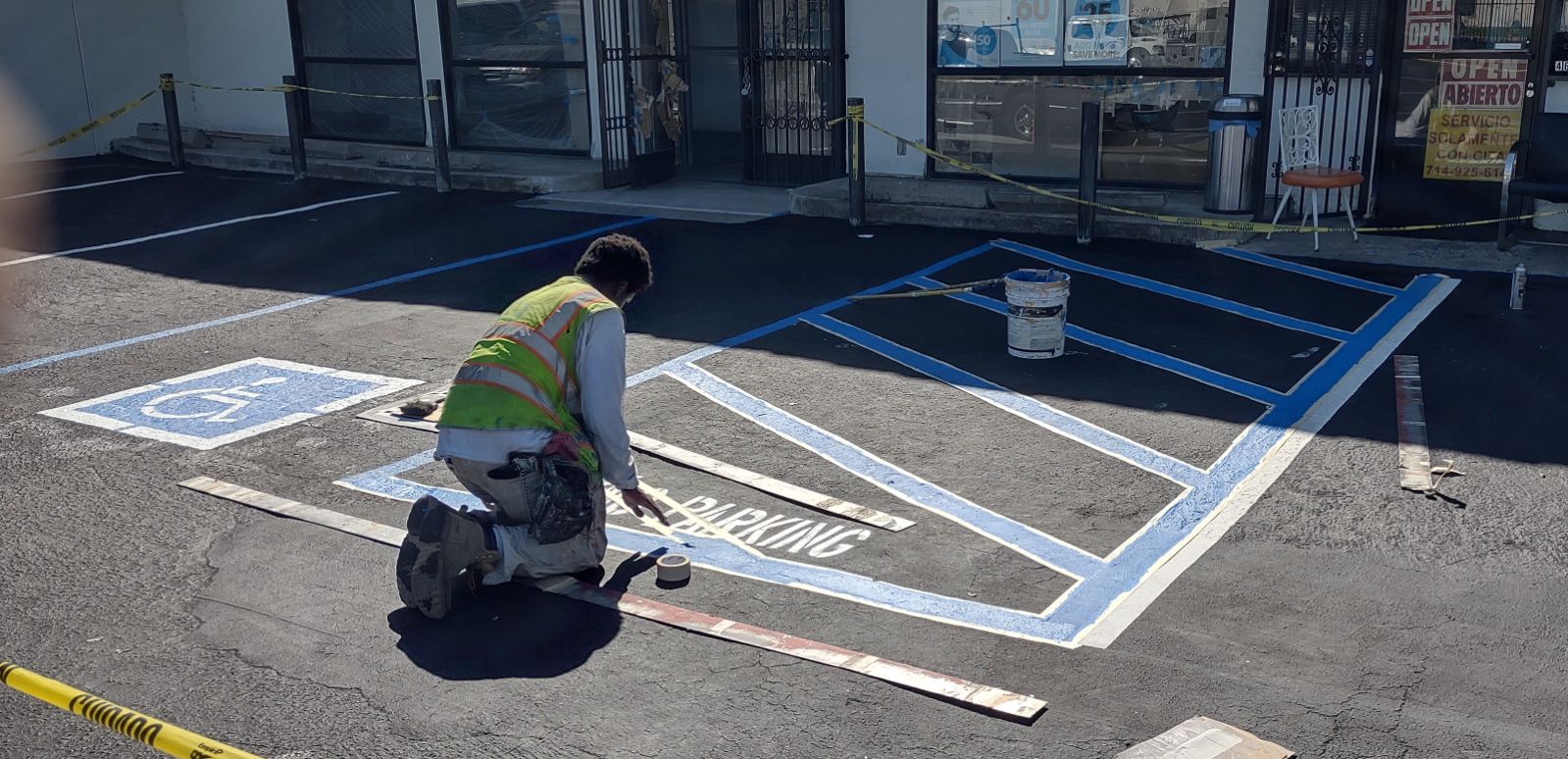 Skilled Line Striping at An Auto Shop in San Pedro, CA