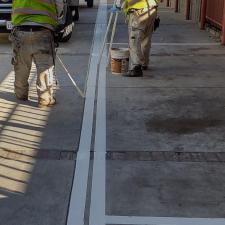 Our recent parking lot painting project at the Los Angeles apartment complex has improved the parking area significantly. It now features high-quality striping that marks out parallel parking stalls with double lines for two-sided driving. This upgrade enhances the functionality and aesthetics of the parking area, making it more organized and visually appealing. The customer was pleased with the job, further highlighting the success of the project.